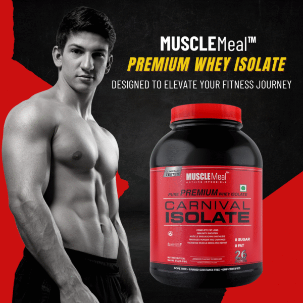Muscle Meal Pure Whey Isolate delivers 26g protein per serving with zero sugar, zero fat, gluten-free nutrition to support muscle growth, recovery, and balanced fitness goals.